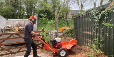 Stump grinders will mechanically grind out the main root plate leaving behind a fine sawdust.
