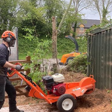Stump grinders will mechanically grind out the main root plate leaving behind a fine sawdust.